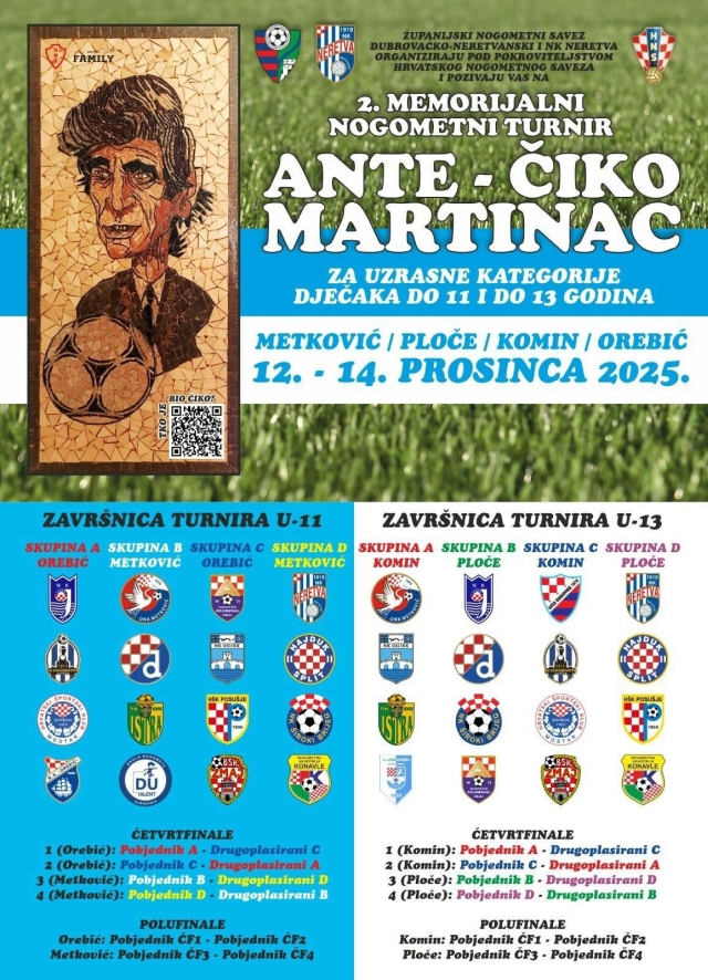 Brojevi su to sudionika ovogodišnjeg 2. po redu Memorijalnog turnira Ante 'Čiko' Martinac koji će se ovog vikenda odigravati u Metkoviću , Kominu , Pločama i Orebiću. Među njima biti će više momčadi hrvatskih i bosansko-hercegovačkih prvoligaša, ali i dječaci iz pomlatka triju klubova sa našeg korčulansko-pelješkog područja- Orebić, Hajduk 1932 i BŠK Zmaj.