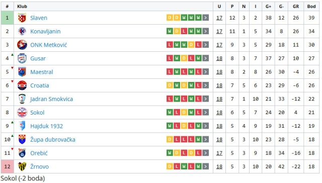 Tablica nakon 18.kola (Grafika ŽNS)