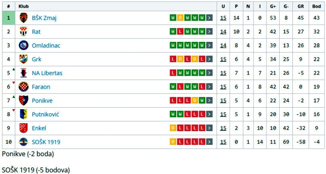 Tablica nakon 15.kola (Grafika ŽNS)