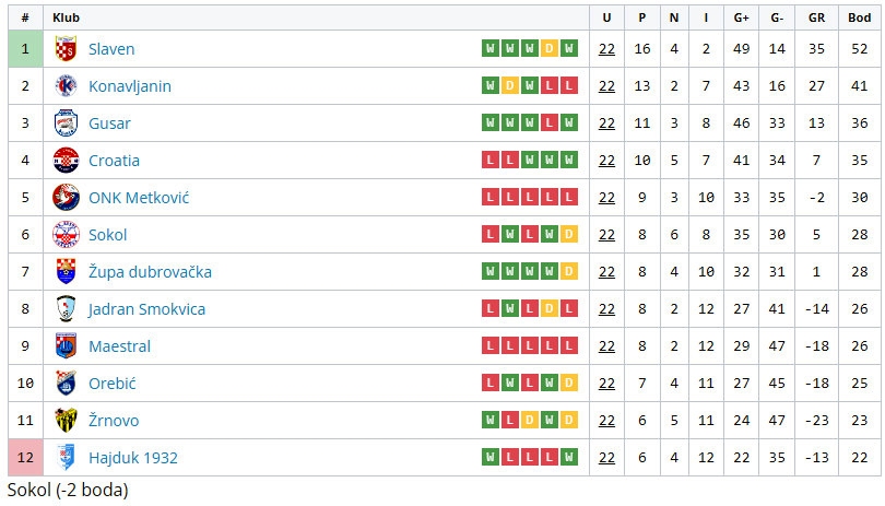 Konačna tablica 1- ŽNL-e sezone 2022/23 (Grafika ŽNS )